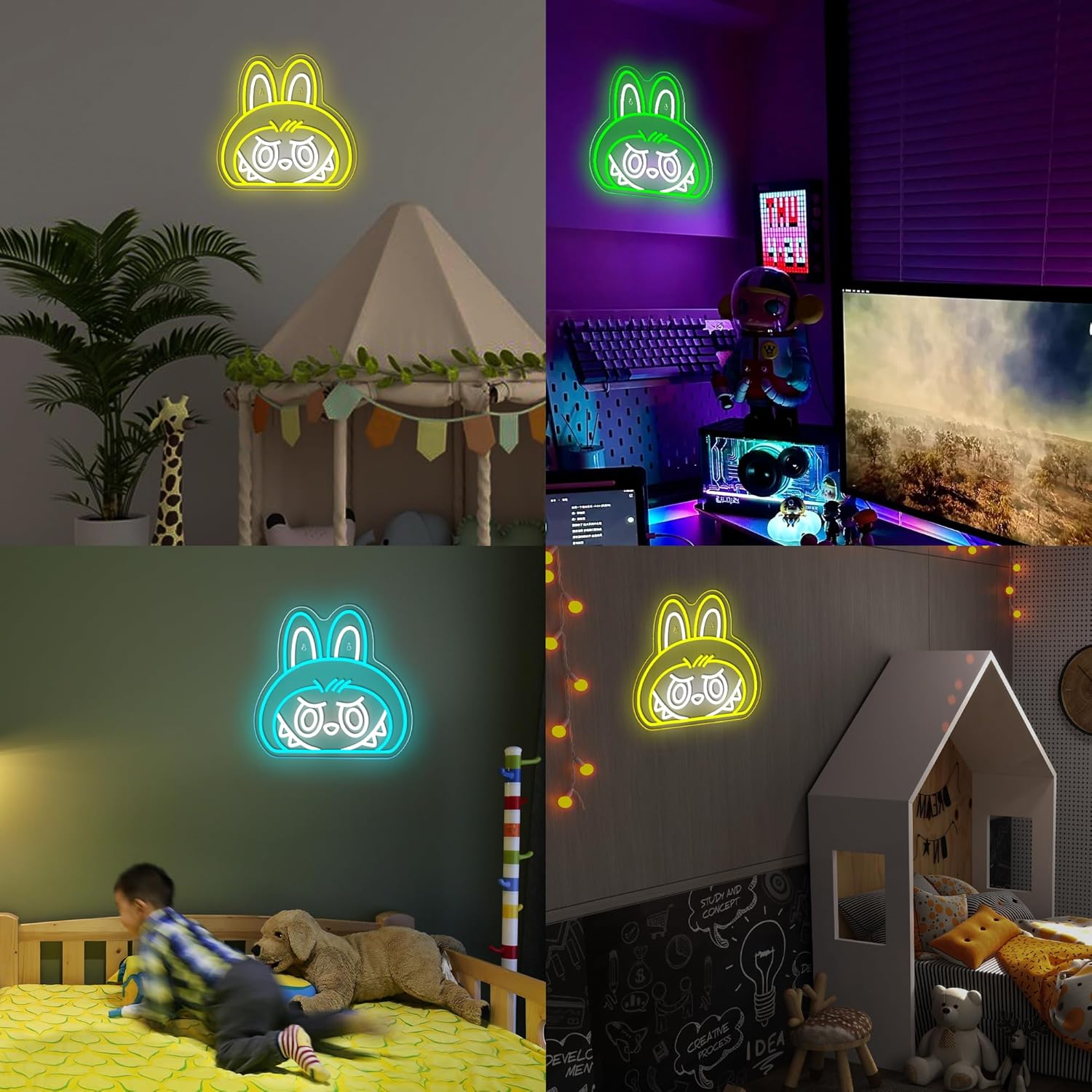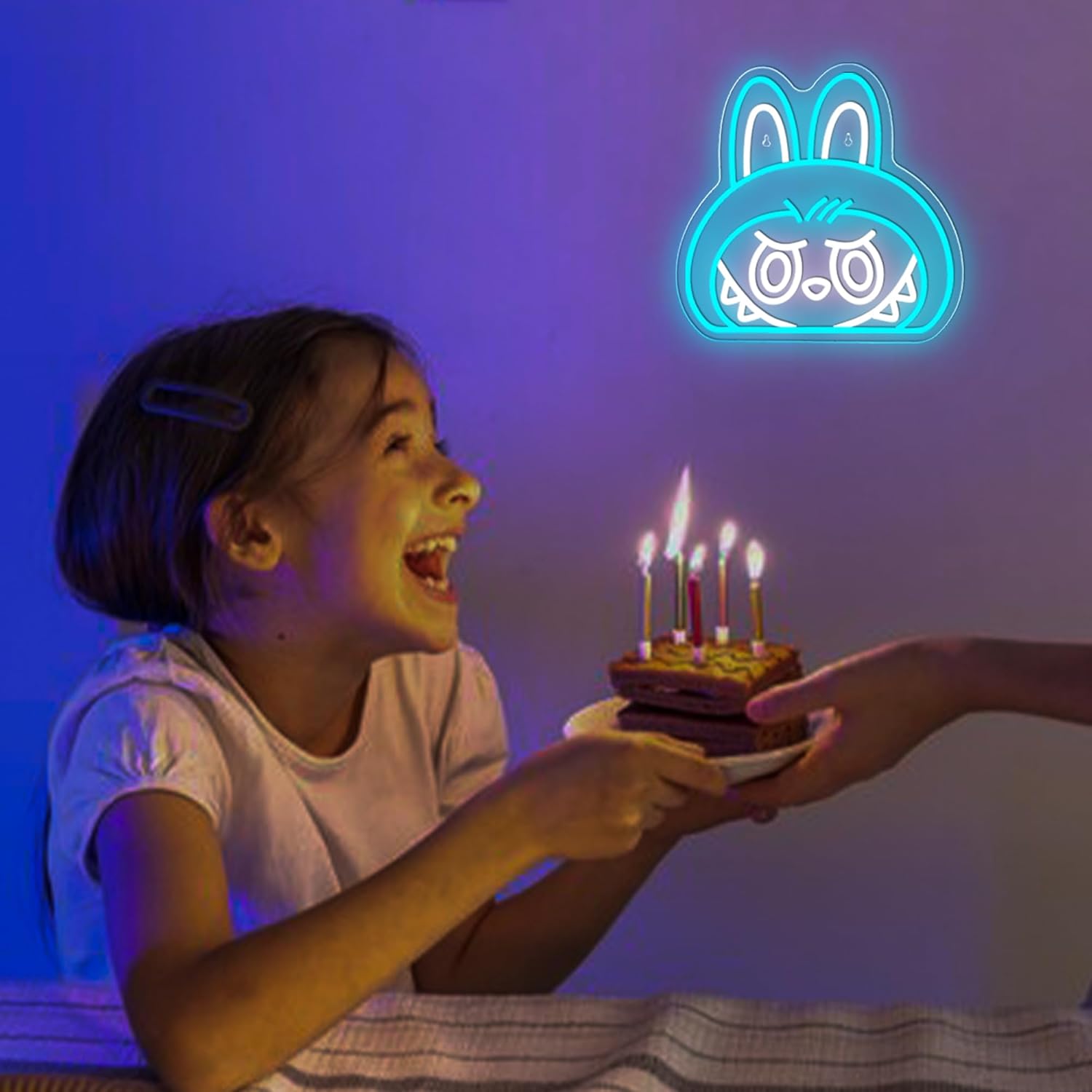 - DESIGN: Features adorable cartoon character in vibrant blue neon lighting that adds a playful touch to any space